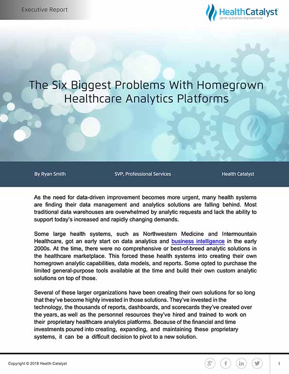 This article deals with the six biggest problems to maintaining a homegrown healthcare analytic platform today: