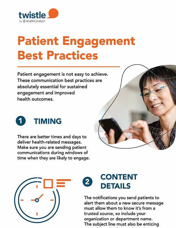 Throughout Twistle™ by Health Catalyst’s 10-year history, the organization has generated meaningful activation data to confidently recommend optimal patient engagement strategies and communication pathways. Twistle partners with life sciences companies, health systems, and payers to improve health outcomes and quality of life for patients.