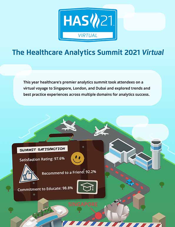 Even virtually, transporting 3,000-plus healthcare leaders and activists across three international destinations is no small feat. Add world-class data and analytics insight and inspiration from healthcare and beyond to the voyage and you have a three-day journey of a lifetime—otherwise known as the Healthcare Analytics Summit™ (HAS) 21 Virtual. The 2021 edition of healthcare’s premier analytics summit once again gathered innovators and heroes from around the globe to explore multi-domain analytics as the framework for a winning team approach to healthcare transformation.