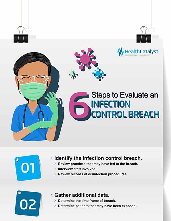The CDC outlines the following six steps to evaluate infection control breaches: