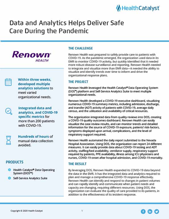 Renown Health leveraged the Health Catalyst® Data Operating System (DOS™) platform and Self-Service Analytics Suite to meet multiple organizational needs.