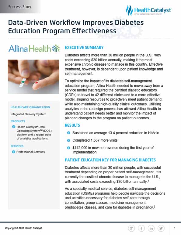 Allina Health will continue to improve its DSME program, using analytics to monitor its effectiveness and taking a data-driven approach to improving chronic disease management.