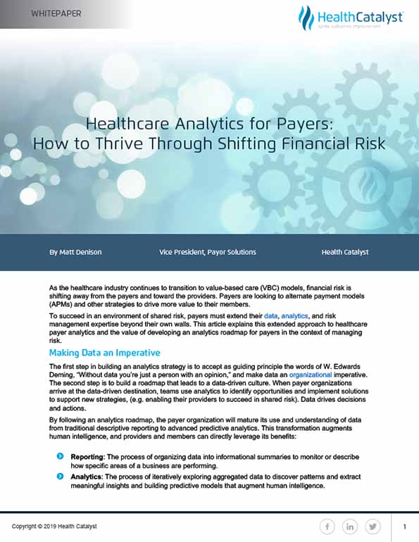To succeed in an environment of shared risk, payers must extend their data, analytics, and risk management expertise beyond their own walls. This article explains this extended approach to healthcare payer analytics and the value of developing an analytics roadmap for payers in the context of managing risk.