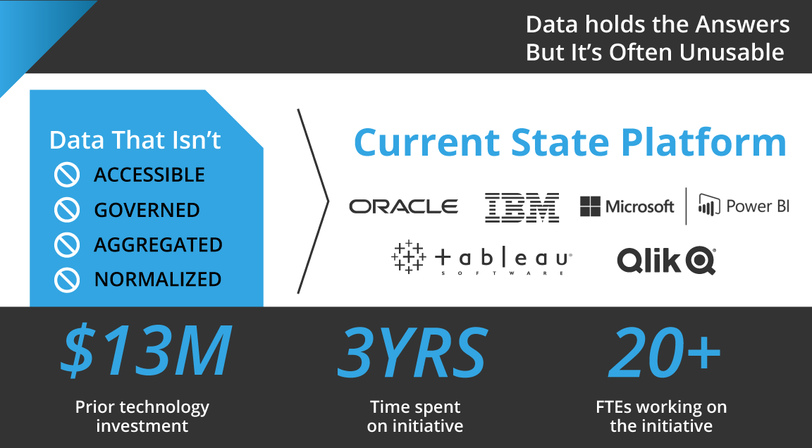 Organizations need—now more than ever—reliable, scalable, data and analytics infrastructures that can keep up with a growing demand for accessible data and actionable insights. Too often, however, platforms don’t deliver usable data despite significant investment, time, and workforce resources (Figure 2).