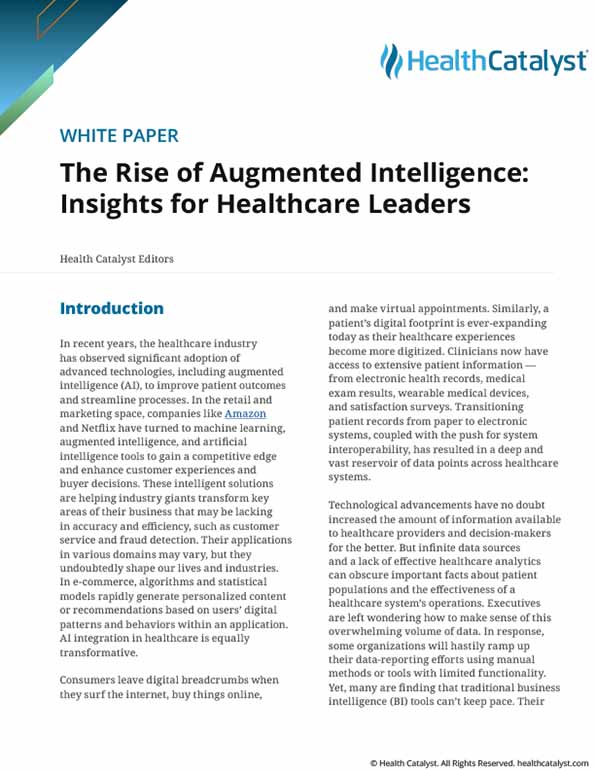 These examples demonstrate that with accurate interpretation of analytics, healthcare leaders gain data-driven insight to know how to strategically improve and measure wins and losses. AI tools, like Healthcare.AI™ from Health Catalyst, make interpretation simple with pre-built algorithms for executives and data science leaders.