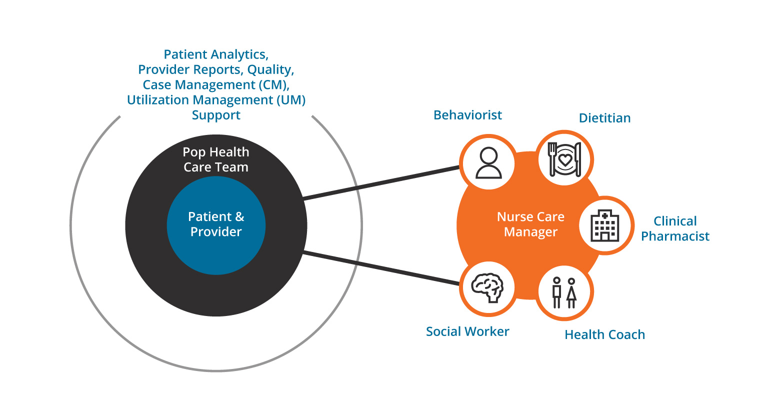 The care team PODs enable better care management via embedded and virtual resources. They also promote more collaboration among clinical care teams and generate a comprehensive view of care across the continuum.