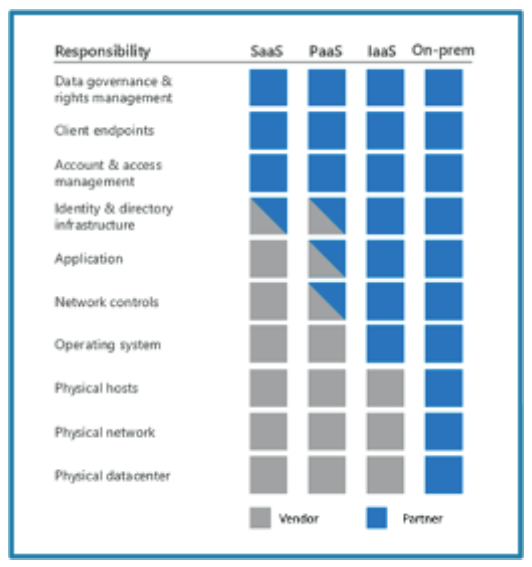 In a vendor-partner relationship, both parties often share the security responsibility, varying according to the type of hosted infrastructure. For example, in Figure 1, an on-premises (or self-hosted) solution, the responsibility and ownership fall more with the partner and move to the vendor as the hosted model moves towards software as a service (SaaS).